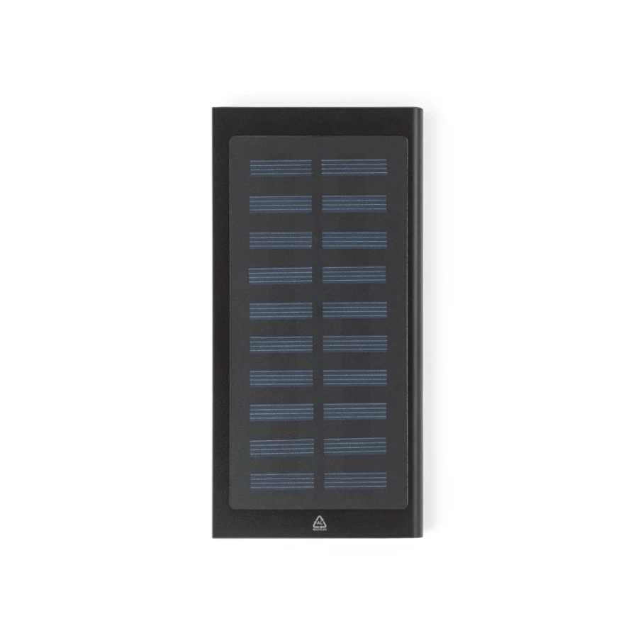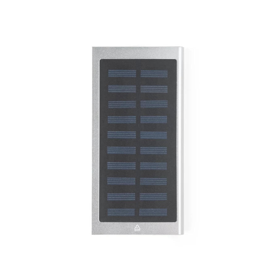Power bank z panelem słonecznym, latarką i wskaźnikiem poziomu naładowania. Idealny w sytuacjach awaryjnych, zarówno ze względu na możliwość ładowania baterii za pomocą światła słonecznego, jak i wbudowaną latarkę LED.Materiał: aluminium z recyklingu (100% rAL)Pojemność: 8000 mAhWejście: USB-C (10 W)Wyjścia: 2x USB-A, USB-C (10 W)W zestawie: kabel USB-A / USB-COpakowanie: pudełko prezentowe z papieru kraftowego z recyklingu.Wymiary: 10 x 153 x 74 mm