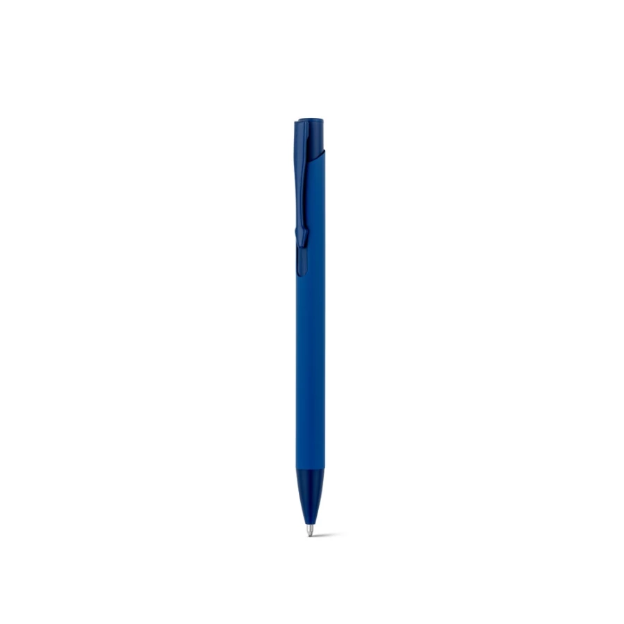 Pióro kulkowe z recyklingowanego aluminium (100% rAL) z gumowym wykończeniem. Niebieski tusz. ø10 x 136 mm