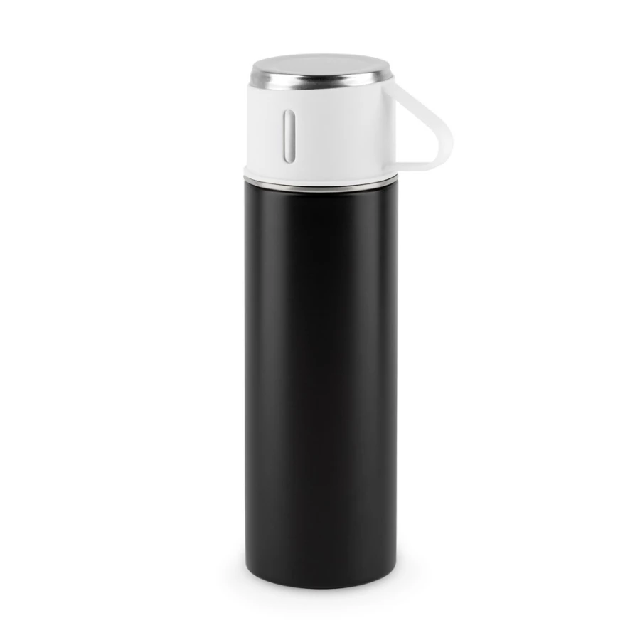 Dwuścienna butelka ze stali nierdzewnej (w 90% pochodzącej z recyklingu) o matowym wykończeniu. Pokrywkę, również ze stali nierdzewnej i matowym wykończeniem, można przekształcić w szklankę o pojemności do 140 ml. Pojemność butelki do 490 ml. ø67 x 230 mm