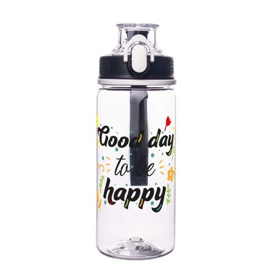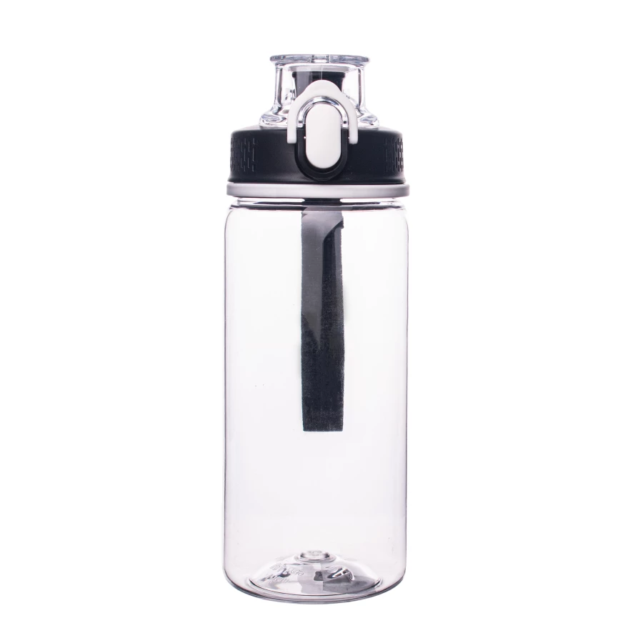 Bidon wykonany z tritanu - materiału, który jest w pełni bezpieczny, lekki, nietłukący, nie powoduje zmiany smaku przechowywanych napojów, chroni napój przed promieniowaniem UV. Dzięki występującej w kilku opcjach kolorystycznych, wykonanej z materiału smyczy na nadgarstek stanowi idealny upominek nie tylko dla osób aktywnych. Dodatkowo posiada zabezpieczenie manualne uniemożliwiające przypadkowe otwarcie.