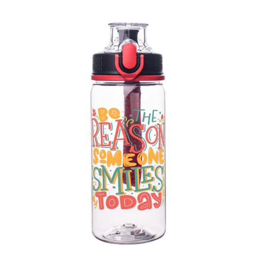 Bidon wykonany z tritanu - materiału, który jest w pełni bezpieczny, lekki, nietłukący, nie powoduje zmiany smaku przechowywanych napojów, chroni napój przed promieniowaniem UV. Dzięki występującej w kilku opcjach kolorystycznych, wykonanej z materiału smyczy na nadgarstek stanowi idealny upominek nie tylko dla osób aktywnych. Dodatkowo posiada zabezpieczenie manualne uniemożliwiające przypadkowe otwarcie.