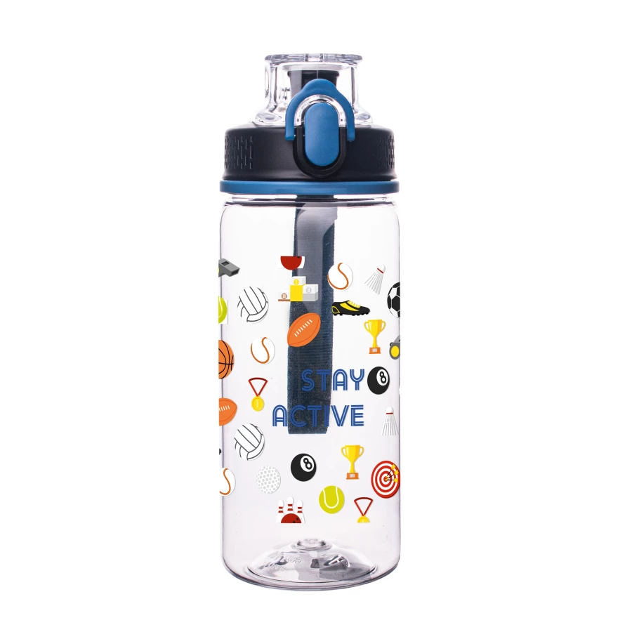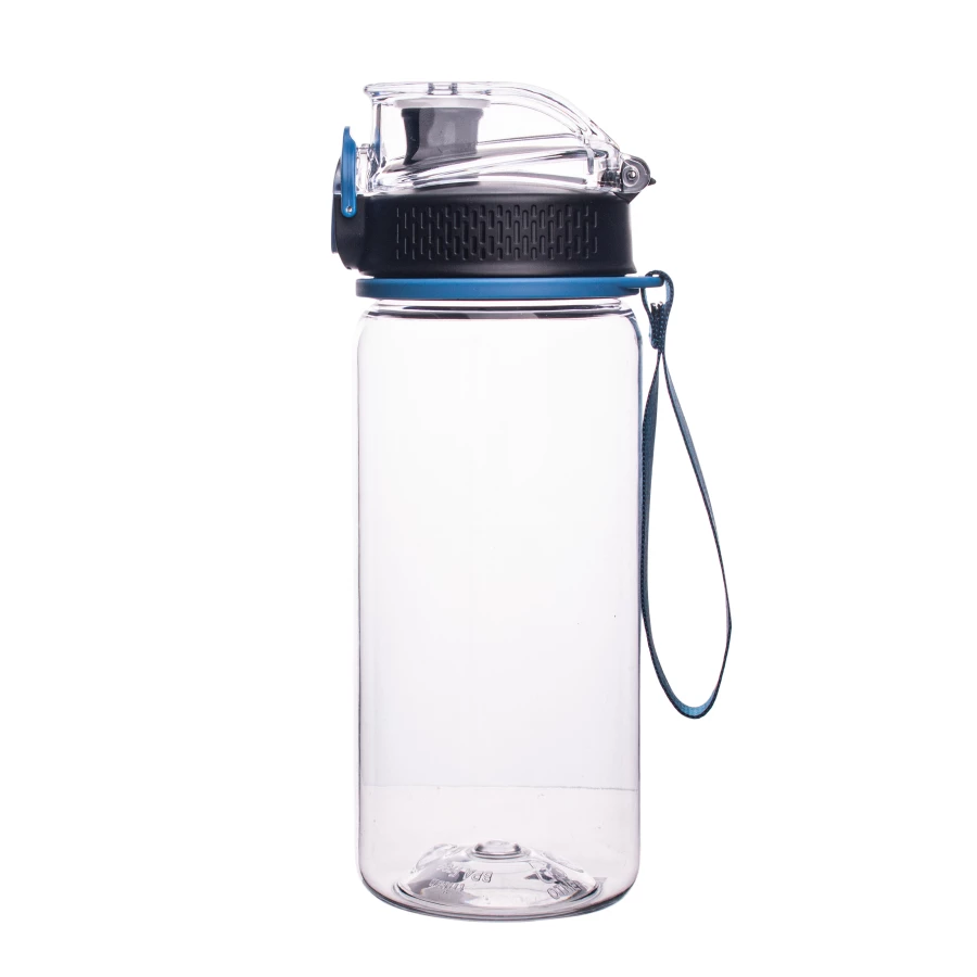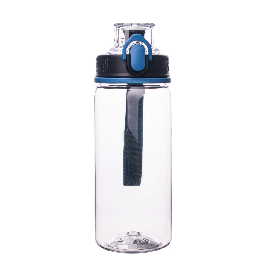 Bidon wykonany z tritanu - materiału, który jest w pełni bezpieczny, lekki, nietłukący, nie powoduje zmiany smaku przechowywanych napojów, chroni napój przed promieniowaniem UV. Dzięki występującej w kilku opcjach kolorystycznych, wykonanej z materiału smyczy na nadgarstek stanowi idealny upominek nie tylko dla osób aktywnych. Dodatkowo posiada zabezpieczenie manualne uniemożliwiające przypadkowe otwarcie.