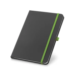 Notatnik A5 w PU z twardą okładką. Zawiera 160 stron w linie (70 g/m²), zakładkę separacyjną dostępną w różnych kolorach, elastyczną opaskę i uchwyt na długopis (nie jest dołączony). 140 x 210 mm