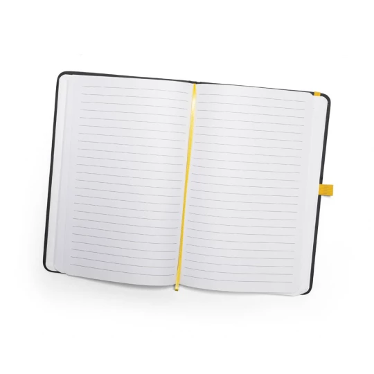 Notatnik A5 w PU z twardą okładką. Zawiera 160 stron w linie (70 g/m²), zakładkę separacyjną dostępną w różnych kolorach, elastyczną opaskę i uchwyt na długopis (nie jest dołączony). 140 x 210 mm