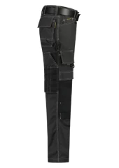 niski stan, pętla na młotek, wielofunkcyjnych kieszeni, zawieszka "D" , pasuje do nakolanników T90, CORDURA® w części kolanowej, możliwość wydłużenia nogawek, rozmiary 45, 47, 49, 51, 53, 55 są przedłużone, pasek nie jest częścią zestawu, Tricorp kod produktu: 502009