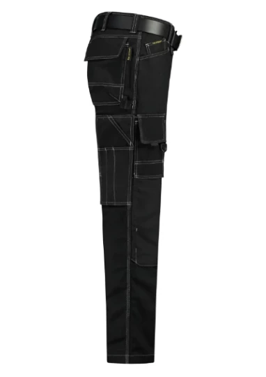 niski stan, pętla na młotek, wielofunkcyjnych kieszeni, zawieszka "D" , pasuje do nakolanników T90, CORDURA® w części kolanowej, możliwość wydłużenia nogawek, rozmiary 45, 47, 49, 51, 53, 55 są przedłużone, pasek nie jest częścią zestawu, Tricorp kod produktu: 502009