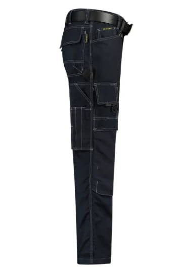 niski stan, pętla na młotek, wielofunkcyjnych kieszeni, zawieszka "D" , pasuje do nakolanników T90, CORDURA® w części kolanowej, możliwość wydłużenia nogawek, rozmiary 45, 47, 49, 51, 53, 55 są przedłużone, pasek nie jest częścią zestawu, Tricorp kod produktu: 502009