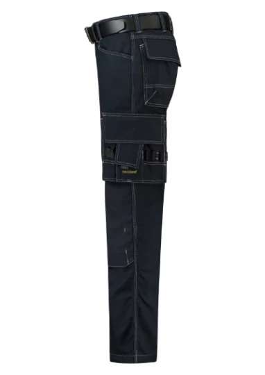 niski stan, pętla na młotek, wielofunkcyjnych kieszeni, zawieszka "D" , pasuje do nakolanników T90, CORDURA® w części kolanowej, możliwość wydłużenia nogawek, rozmiary 45, 47, 49, 51, 53, 55 są przedłużone, pasek nie jest częścią zestawu, Tricorp kod produktu: 502009