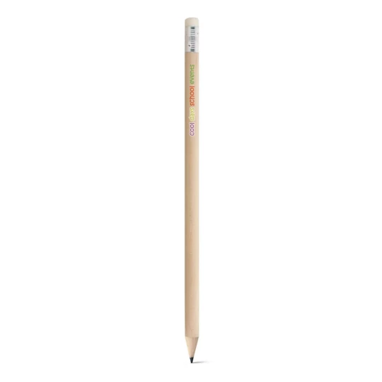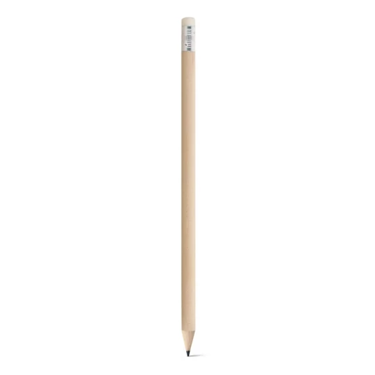 Zaostrzony ołówek z drewna z gumką. Stopień twardości: HB. ø7 x 190 mm