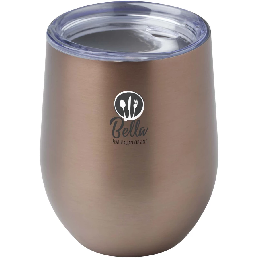 Corzo ze stali nierdzewnej z certyfikatem RCS z dwuścienną konstrukcją próżniową i miedzianą izolacją, która utrzymuje wysoką temperaturę napojów przez 6 godzin lub niską przez 24 godziny. Konstrukcja zapobiega kondensacji na zewnątrz kubka. Łatwe picie, pokrywa typu push-on. Farba proszkowa na zewnętrznej powłoce. Szeroki otwór dla wygodnego napełniania i opróżniania. Pojemność 350 ml. Zapakowana w pudełko upominkowe wykonane z kartonu z recyklingu.
