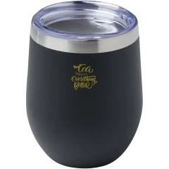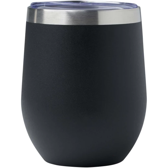 Corzo ze stali nierdzewnej z certyfikatem RCS z dwuścienną konstrukcją próżniową i miedzianą izolacją, która utrzymuje wysoką temperaturę napojów przez 6 godzin lub niską przez 24 godziny. Konstrukcja zapobiega kondensacji na zewnątrz kubka. Łatwe picie, pokrywa typu push-on. Farba proszkowa na zewnętrznej powłoce. Szeroki otwór dla wygodnego napełniania i opróżniania. Pojemność 350 ml. Zapakowana w pudełko upominkowe wykonane z kartonu z recyklingu.