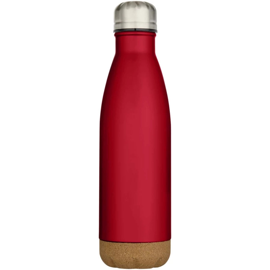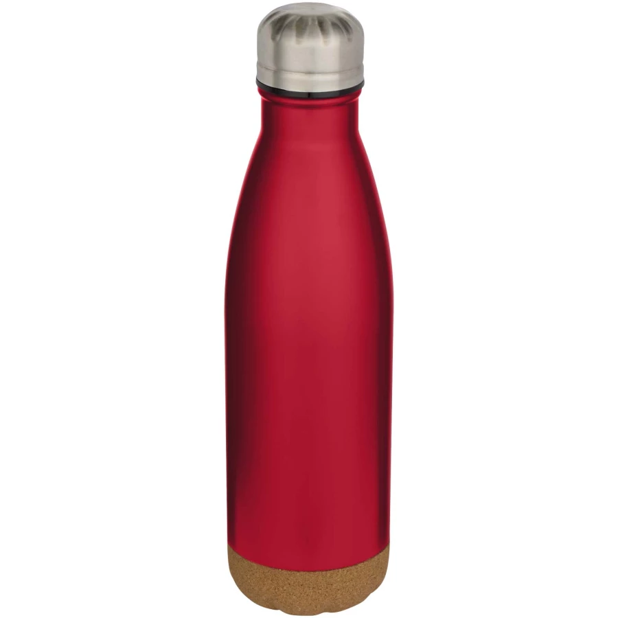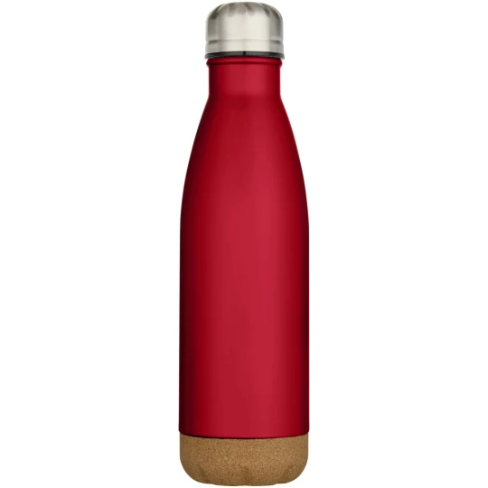 Butelka na wodę ze stali nierdzewnej, izolowana próżniowo, z detalami z korka na spodzie. Podwójna ścianka izolacyjna utrzymuje napoje ciepłe lub zimne przez kilka godzin. Zapakowana w pudełko upominkowe wykonane z kartonu z recyklingu. Pojemność: 500 ml.