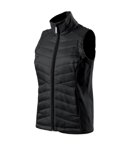 połączenie tkaniny pikowanej i softshellowej, krój taliowany za pomocą bocznych części, zamek błyskawiczny na całej długości z ochroną podbródka, boczne kieszenie z zamkiem błyskawicznym, wewnętrzna kieszonka na suwak, lekko przedłużona w tylnej części, dostęp do brandingu w części tylnej
