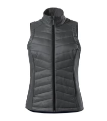 połączenie tkaniny pikowanej i softshellowej, krój taliowany za pomocą bocznych części, zamek błyskawiczny na całej długości z ochroną podbródka, boczne kieszenie z zamkiem błyskawicznym, wewnętrzna kieszonka na suwak, lekko przedłużona w tylnej części, dostęp do brandingu w części tylnej