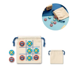 Klasyczna drewniana gra w kółko i krzyżyk, 10-częściowa. Torba ze 100% bawełny (140 g/m²) zapinana na sznurek służy jako plansza do gry. Lekka i praktyczna do grania w dowolnym miejscu. Rozmiar sztuki: ø25 mm | Etui: 120 x 130 mm