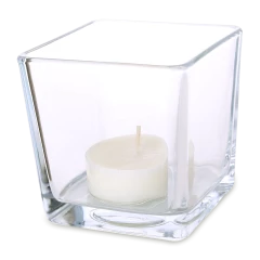 Lampion o modnym kształcie sześciana. Występuje w dwóch wariantach pojemności. Posiada wkład w postaci tealight’a z wosku sojowego, który jest naturalny i bezpieczny oraz nie wydziela szkodliwych substancji podczas spalania.