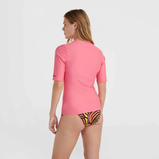 Materiał: 79% poliester z recyklingu (REPREVE), 21% elastan Dopasowany fason Ciężki, elastyczny materiał Gramatura 220 g/m² Ochrona przed promieniowaniem UV UPF 50+ Nadruk termotransferowy z przodu Krótkie rękawy Program O'Neill Blue - zrównoważone pozyskiwanie surowców w zgodzie ze środowiskiem