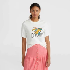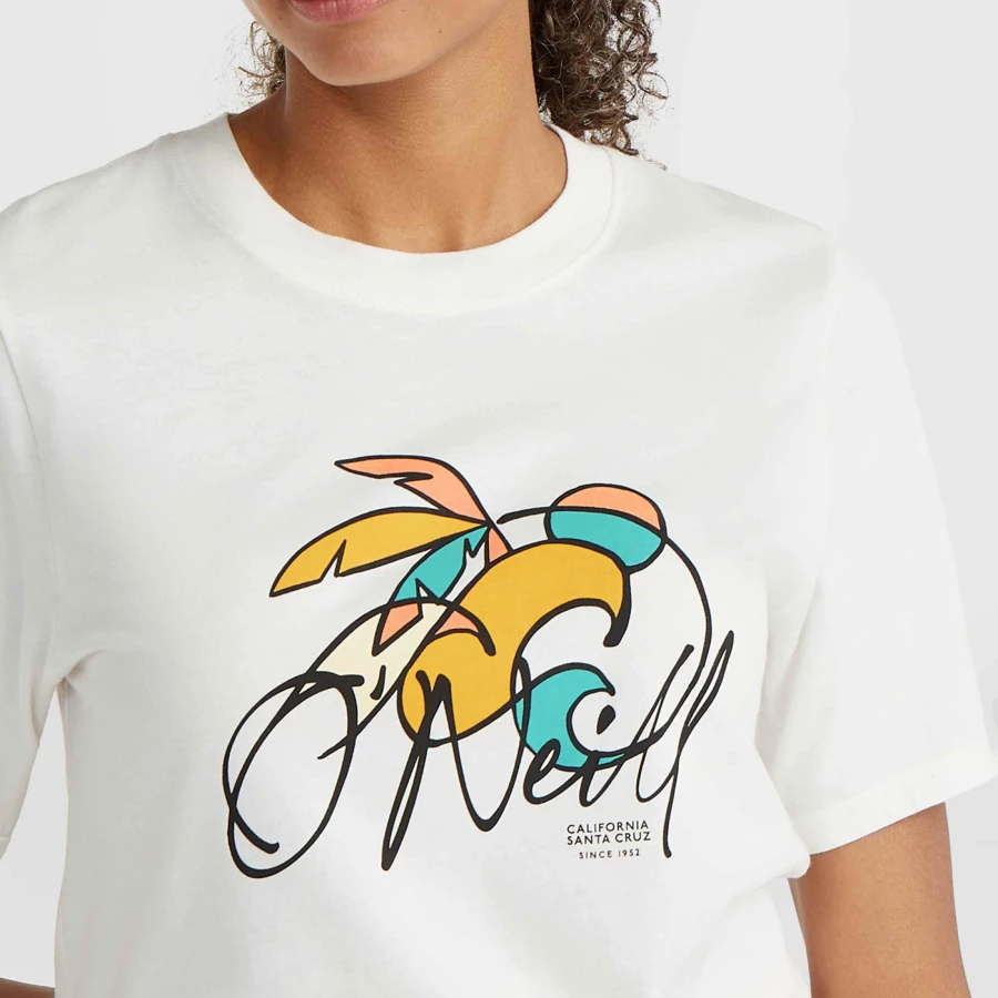 Materiał: 100% bawełna Prosty krój Dżersej o średniej gramaturze 160 g/m² Nadruk pigmentowy na bazie wody z przodu Prążkowany kołnierzyk Okrągły dekolt Krótkie rękawy Program O'Neill Blue - zrównoważone pozyskiwanie surowców w zgodzie ze środowiskiem