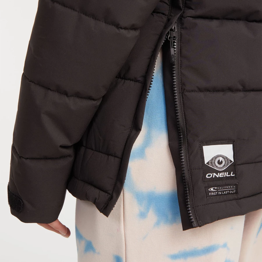 Materiał: 52% poliester, 48% poliester z recyklingu Izolacja: sztuczny puch Repreve® z poliestru pochodzącego z recyklingu Regularny krój Wodoodporność: 10.000 mm H2O Oddychalność: 10.000 gr/m²/24h Trwała powłoka hydrofobowa bez PFC Pół zamek błyskawiczny z ochroną podbródka Zamek błyskawiczny po bokach ułatwiający zakładanie Regulowane mankiety za pomocą rzepów Stały kaptur Plisa przeciwwiatrowa Kieszenie boczne