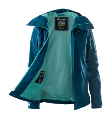Materiał zewnętrzny: 100% poliester; materiał podszewki: 100% poliester; rozmiar: S–XL; wodoodporna i oddychająca membrana (15 000 mm H2O / 15 000 g H2O/m2); wodoszczelne zamki i szwy; panele wentylacyjne dla jeszcze lepszej oddychalności; rozkloszowany fason eksponujący zalety kobiecej sylwetki; modna kolorystyka; 2 kieszenie piersiowe i 2 kieszenie biodrowe; troczki przy zamkach ułatwiające zapinanie.