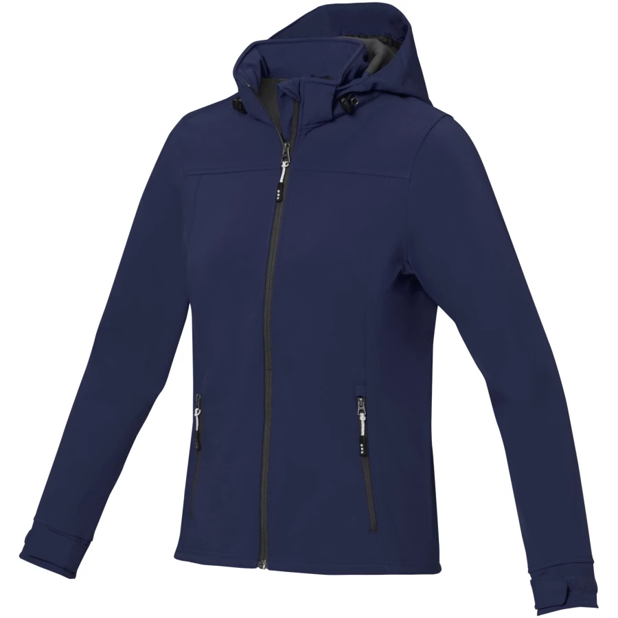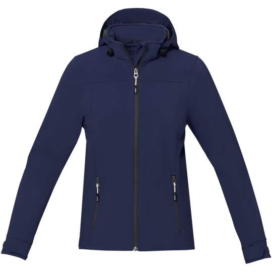 Damska kurtka softshell Langley - dla najwyższej wydajności na świeżym powietrzu. Kurtka ma wodoodporność 5000 mm, dzięki czemu będziesz sucha i chroniona przed żywiołami. Wyjątkowa oddychalność na poziomie 3000 g/m² odprowadza wilgoć, zapewniając Ci komfort podczas intensywnych aktywności. Ciesz się nieograniczonym ruchem dzięki czterokierunkowej elastycznej tkaninie, łączącej poliester i elastan (300 g / m²), zaprojektowanej tak, aby zginać się i dostosowywać do każdego ruchu ciała. Połączona warstwa wewnętrzna zawiera mikropolar wykonany z poliestru, uzupełniony laminacją TPU, która zwiększa izolację i ciepło kurtki oraz chroni ją przed każdą pogodą. Odpinany kaptur dostosowuje się do różnych warunków pogodowych, a regulowane mankiety z zapięciem na rzep gwarantują ścisłe i wygodne dopasowanie. Elastyczny sznurek ściągający z regulowanym zapięciem na sznurek pozwala dopasować kurtkę do dowolnych preferencji. Dzięki bezpiecznym kieszeniom na dłonie z zamkami błyskawicznymi możesz mieć swoje niezbędne rzeczy pod ręką podczas każdej przygody. Bądź gotowy na każdą przygodę w stylu, komforcie i pewności siebie dzięki kurtce softshell Langley. Ta kurtka ma dopasowany krój, który zapewnia kobiecy wygląd.