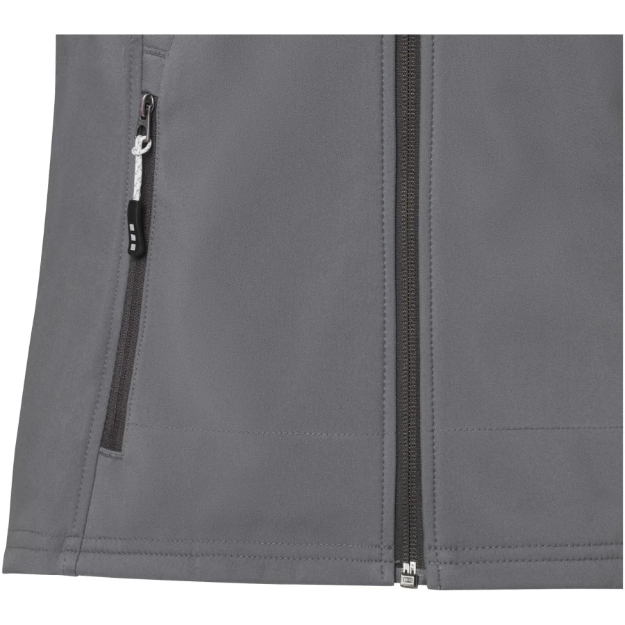 Damska kurtka softshell Langley - dla najwyższej wydajności na świeżym powietrzu. Kurtka ma wodoodporność 5000 mm, dzięki czemu będziesz sucha i chroniona przed żywiołami. Wyjątkowa oddychalność na poziomie 3000 g/m² odprowadza wilgoć, zapewniając Ci komfort podczas intensywnych aktywności. Ciesz się nieograniczonym ruchem dzięki czterokierunkowej elastycznej tkaninie, łączącej poliester i elastan (300 g / m²), zaprojektowanej tak, aby zginać się i dostosowywać do każdego ruchu ciała. Połączona warstwa wewnętrzna zawiera mikropolar wykonany z poliestru, uzupełniony laminacją TPU, która zwiększa izolację i ciepło kurtki oraz chroni ją przed każdą pogodą. Odpinany kaptur dostosowuje się do różnych warunków pogodowych, a regulowane mankiety z zapięciem na rzep gwarantują ścisłe i wygodne dopasowanie. Elastyczny sznurek ściągający z regulowanym zapięciem na sznurek pozwala dopasować kurtkę do dowolnych preferencji. Dzięki bezpiecznym kieszeniom na dłonie z zamkami błyskawicznymi możesz mieć swoje niezbędne rzeczy pod ręką podczas każdej przygody. Bądź gotowy na każdą przygodę w stylu, komforcie i pewności siebie dzięki kurtce softshell Langley. Ta kurtka ma dopasowany krój, który zapewnia kobiecy wygląd.