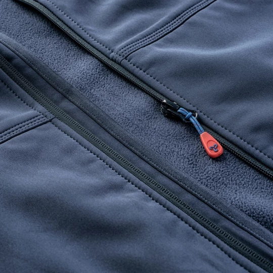 SOFTSHELL SKŁAD MATERIAŁOWY: MATERIAŁ ZEWNĘTRZNY: 96% POLIESTER, 4% ELASTAN PODSZEWKA: 100% POLIESTER (POLAR) SPECYFIKACJA: ODDYCHALNOŚĆ: 5000 g/m2/24 h WODOODPORNY ODPINANY I REGULOWANY KAPTUR WEWNĘTRZNA KIESZEŃ PODSZYTY MIKROPOLAREM