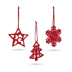 Zestaw filcowych dekoracji świątecznych. Zawiera 3 różne dekoracje. 80 x 90 x 3 mm