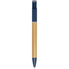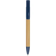 Bambusowy długopis, który pełni także funkcję uchwytu na telefon. Przycisk i środkowy pierścień wykonane są z tworzyw sztucznych pochodzących z recyklingu, końcówka z mosiądzu, a korpus z bambusa pozyskiwanego w sposób zrównoważony. Kolor tuszu: Czarny. Żywotność: 1000 metrów. Rozmiar stalówki: 1,0 mm.