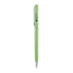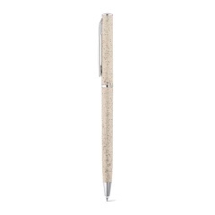 Długopis z włókna ze słomy pszenicy i ABS, z mechanizmem obrotowym i metalowym klipsem. Czarny wkład. Ponieważ produkt jest wykonany z naturalnych materiałów, kolor produktu oraz wynik drukowania mogą się różnić w zależności od produktu. ø8 x 126 mm