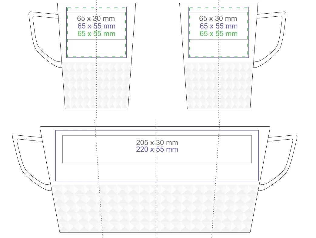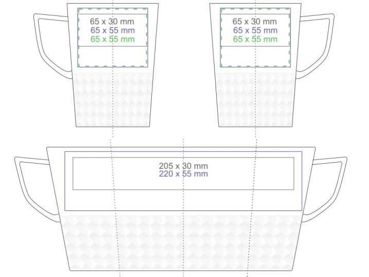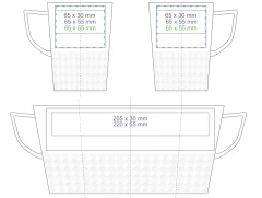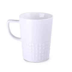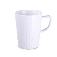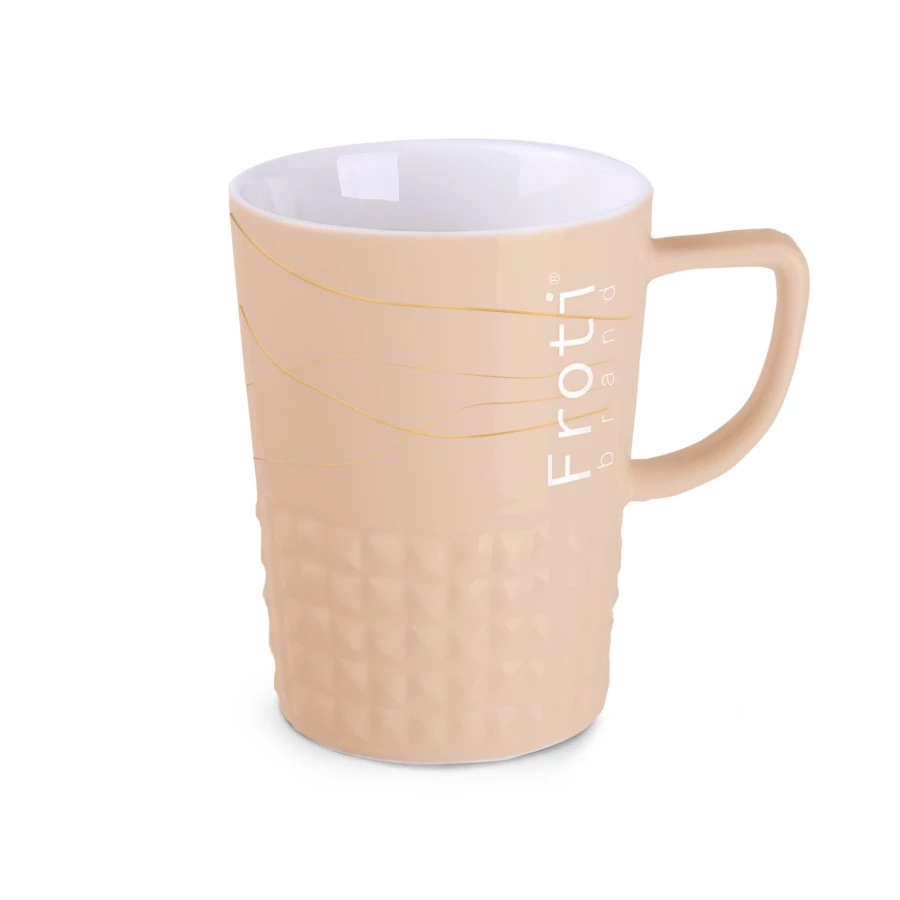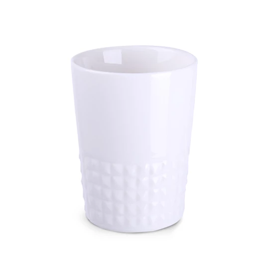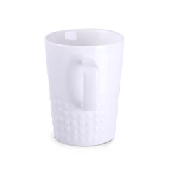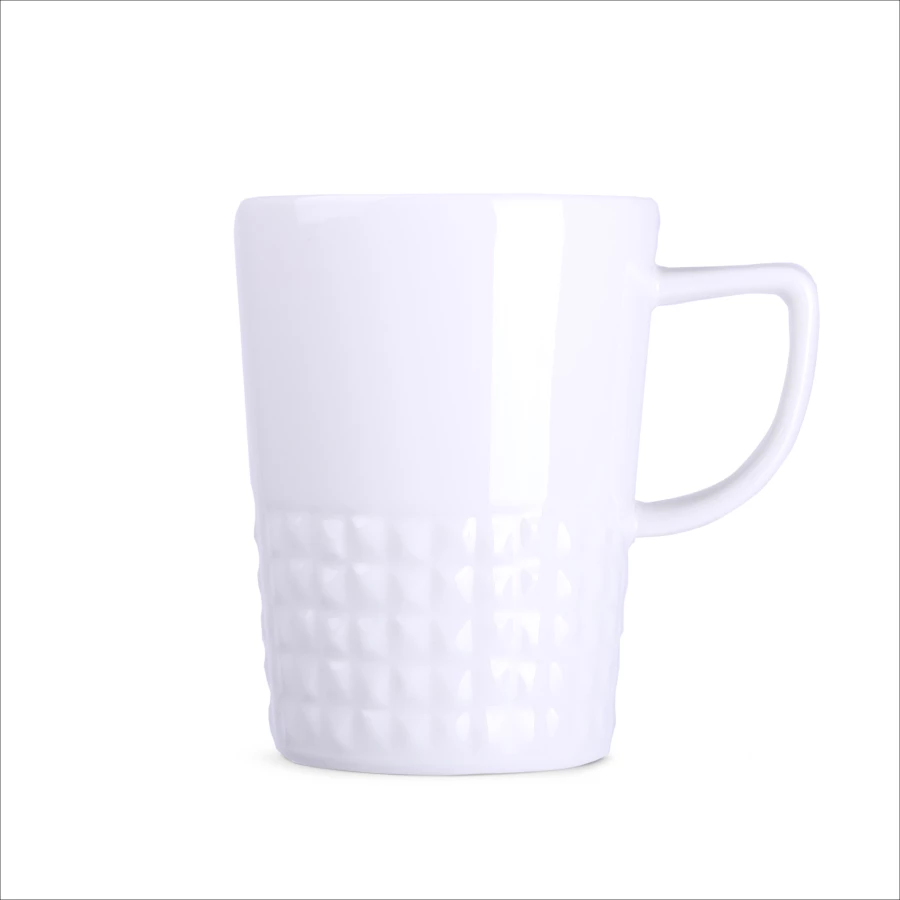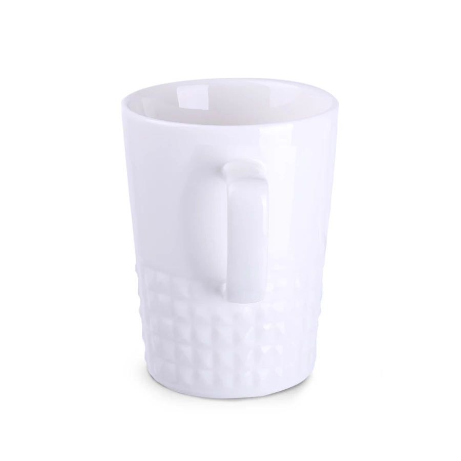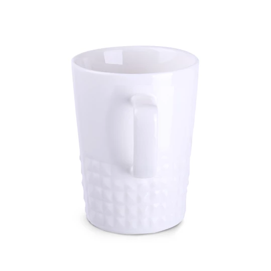 Designerski elegancki kubek wykonany z wysokiej jakości porcelany. Posiada nowoczesne ucho oraz wypustki, które nadają mu wyjątkowego charakteru. Idealny do nanoszenia oryginalnych projektów.