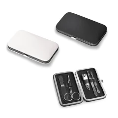 5-częściowy zestaw do manicure z pilnikiem do paznokci, nożyczkami, obcinaczką do paznokci, pęsetą i odpychaczem do skórek. Dostarczany w etui z PU. 110 x 65 x 20 mm