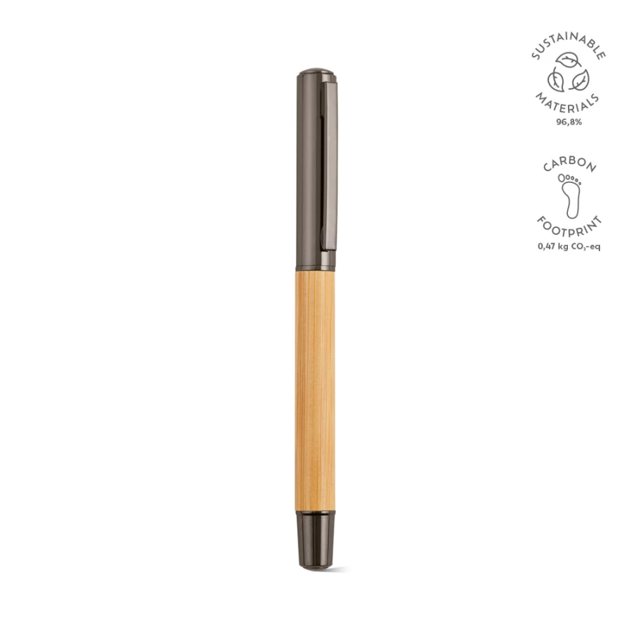 Nasze przyjazne dla środowiska pióro z bambusa i stali nierdzewnej pochodzącej z recyklingu podnosi jakość pisania. Zanurz się w niebieskim atramencie Dokumental®, umieszczonym w eleganckim bambusowym etui. Harmonijne połączenie zrównoważonego rozwoju i wyrafinowania dla każdego wymagającego pisarza.