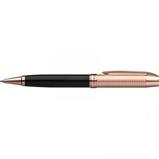 Wysokiej jakości długopis z kolekcji Mark Twain z mechanizmem obrotowym i niebieskim wkładem. Zapakowany w ozdobne, lakierowane etui.