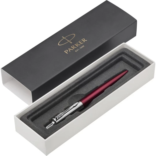 Długopis Parker Jotter Core, wkład w niebieskim kolorze, zapakowany w pudełko upominkowe, produkt wykonany z metalu i stali nierdzewnej