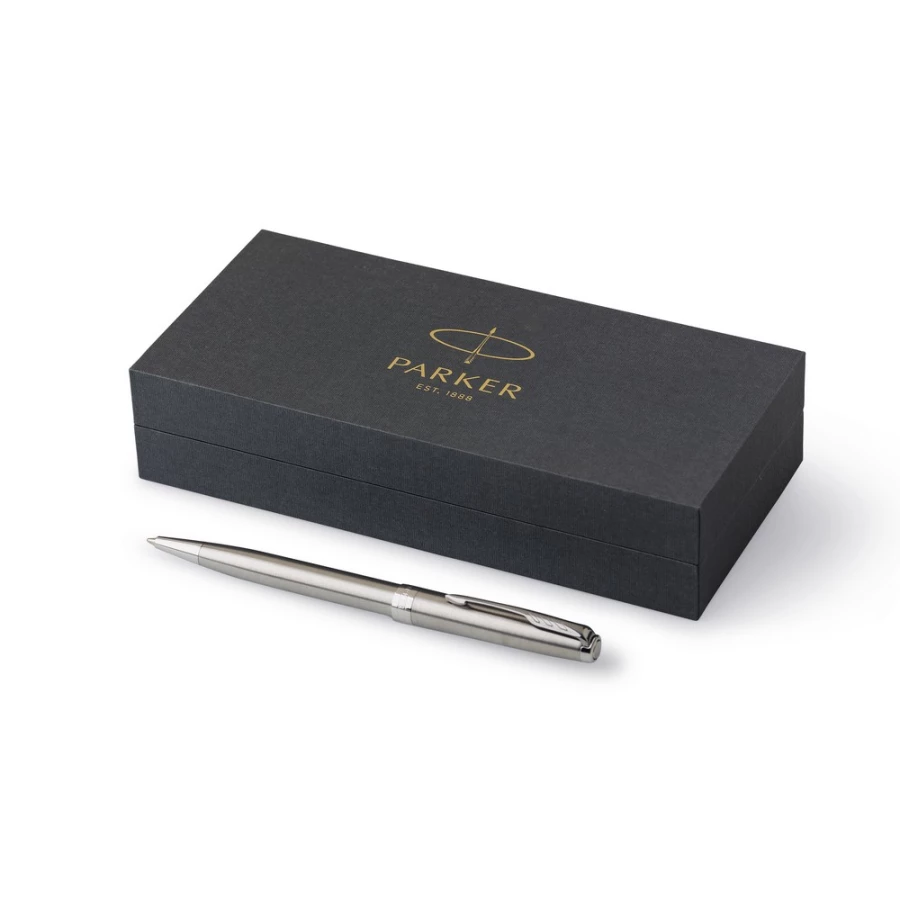 Długopis Parker Sonnet, z mechanizmem naciskowym, wkład w czarnym kolorze, zapakowany w pudełko upominkowe, produkt wykonany z metalu i stali nierdzewnej