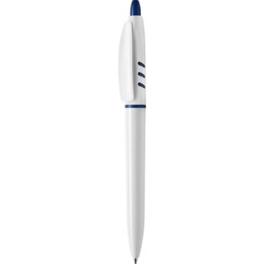 Długopis Stilolinea S30, biały trzon, kolorowe akcenty, wkład w niebieskim kolorze, zawiera tusz German Dokumental Ink, produkt wykonany z ABS, plastiku, niklu i metalu