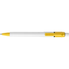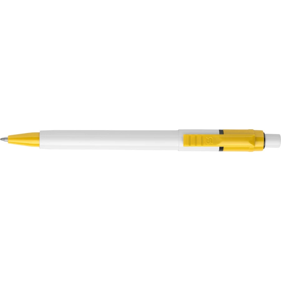 Długopis Stilolinea Baron z wkładem jumbo, biały trzon, kolorowy klips, wkład w niebieskim kolorze, zawiera tusz German Dokumental Ink, produkt wykonany z ABS, plastiku i metalu