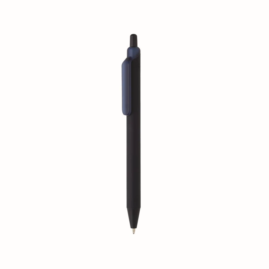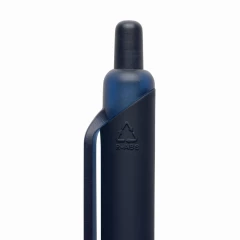 Długopis Tide RABS, wykonany w 91% z recyklingowanego ABS z certyfikatem GRS, gumowany uchwyt zapewniający wygodne pisanie, matowe wykończenie przycisku, klipsa i końcówki, niebieski wkład piszący do 1200 m, mechanizm przyciskowy.