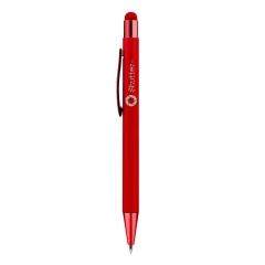 Długopis z kolorowym trzonem i błyszczącymi elementami, końcówka touch pen umożliwiająca obsługę ekranów dotykowych, wkład w niebieskim kolorze, produkt wykonany z aluminium