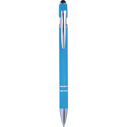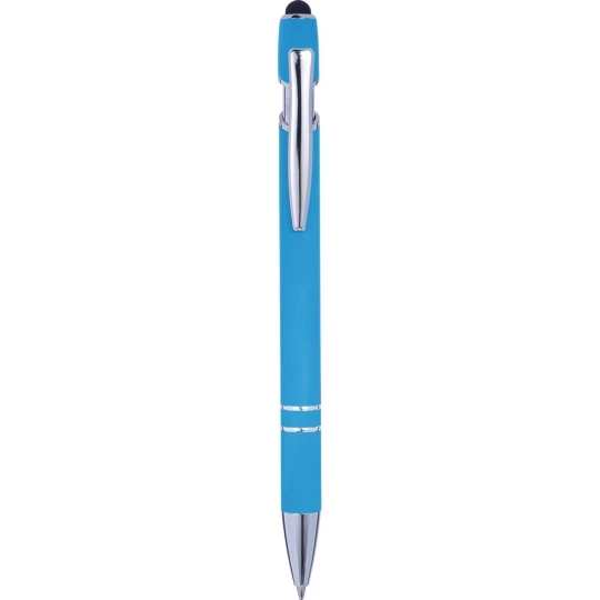 Długopis, touch pen, kolorowy gumowany trzon i srebrne elementy