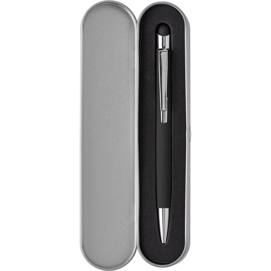 Długopis, touch pen ze srebrnymi elementami, w metalowym etui
