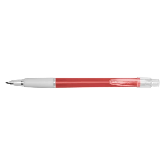 Długopis z gumowym uchwytem, kolorowym trzonem i półprzezroczystym klipem