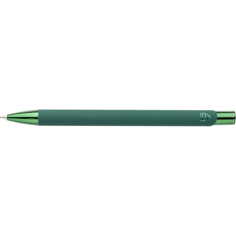 Długopis, metalowy klips, wkład w niebieskim kolorze, ikona recyklingu na produkcie, wystarcza na ok, 800 m pisania, produkt wykonany z ABS z recyklingu, aluminium z recyklingu i metalu