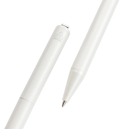 Długopis, przekręcana konstrukcja, niebieski wkład, długość pisania ok. 1000 m, wykonany z materiałów pochodzących z recyklingu, całkowita zawartość materiałów obliczona na podstawie wagi całkowitej przedmiotu: 28%, ślad węglowy produktu: 0,09 kg CO2