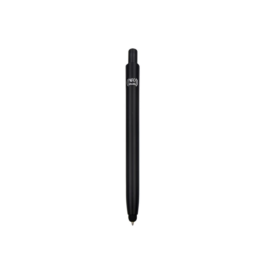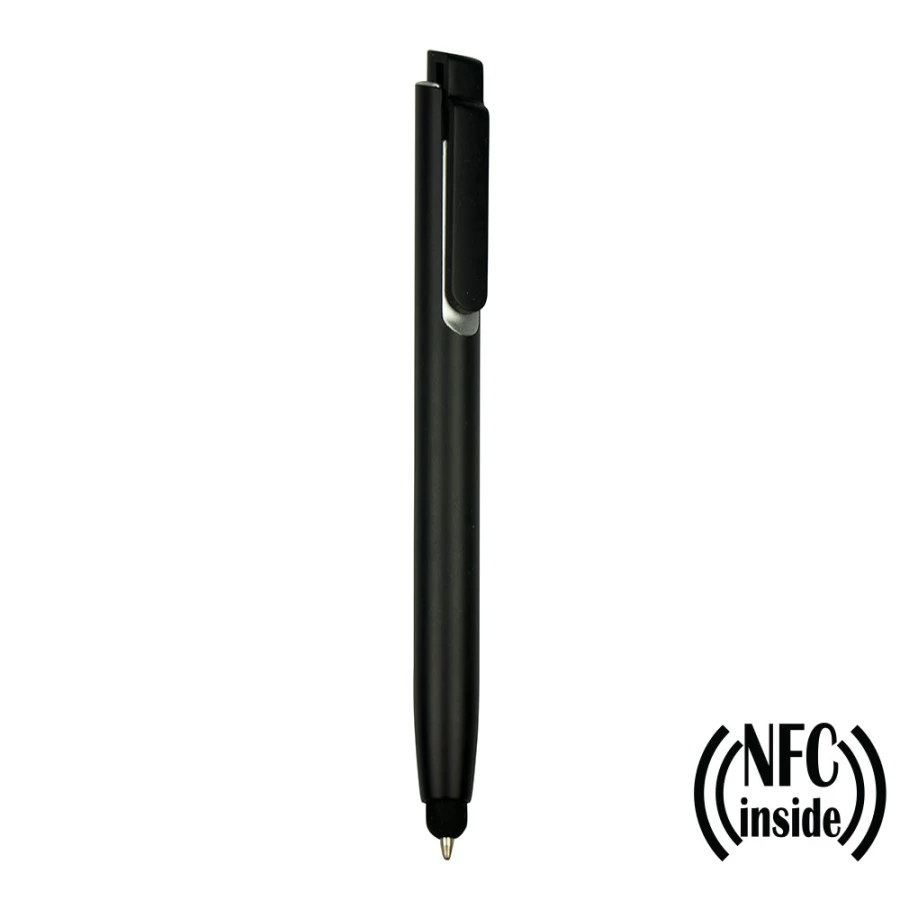 Długopis z chipem NFC (Near Field Communication), działa z urządzeniami posiadającymi technologię NFC, końcówka touch pen umożliwiająca obsługę ekranów dotykowych, posiada kolorowy trzon i elementy w srebrnym kolorze. NFC to międzynarodowy standard komunikacji bezprzewodowej wymiany danych na niewielkie odległości. Umieszczony w długopisie chip umożliwia zapisanie na nim np. adresu strony internetowej, który zostanie odczytany przez urządzenie z technologią NFC po zbliżeniu go do logotypu NFC znajdującego się na produkcie.