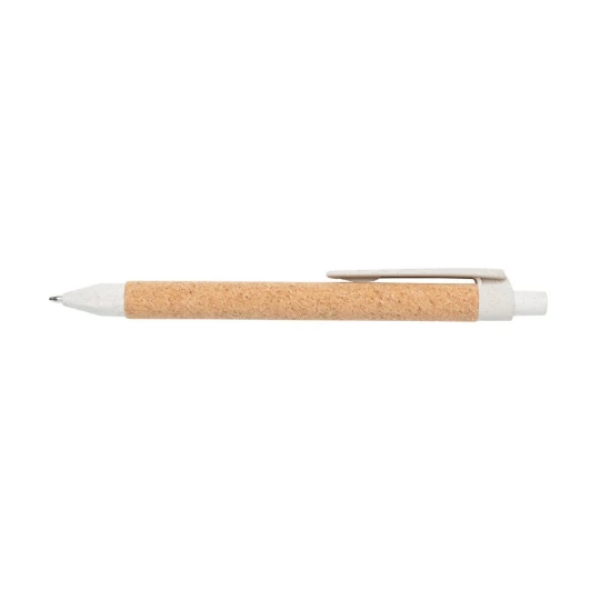 Długopis z recyklingu, wykonany ze słomy pszenicznej z dodatkiem korka, niemiecki wkład Dokumental® w kolorze niebieskim w komplecie, długość pisania ok. 1200 m, kulka TC zapewnia wygodne pisanie, ślad węglowy produktu: 0,03 kg CO2