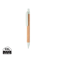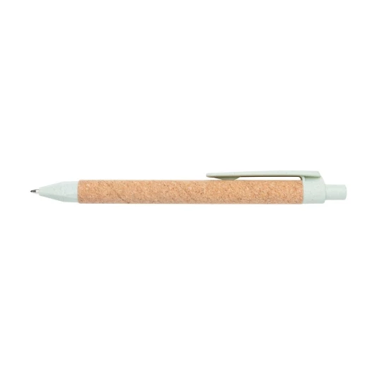 Długopis z recyklingu, wykonany ze słomy pszenicznej z dodatkiem korka, niemiecki wkład Dokumental® w kolorze niebieskim w komplecie, długość pisania ok. 1200 m, kulka TC zapewnia wygodne pisanie, ślad węglowy produktu: 0,03 kg CO2