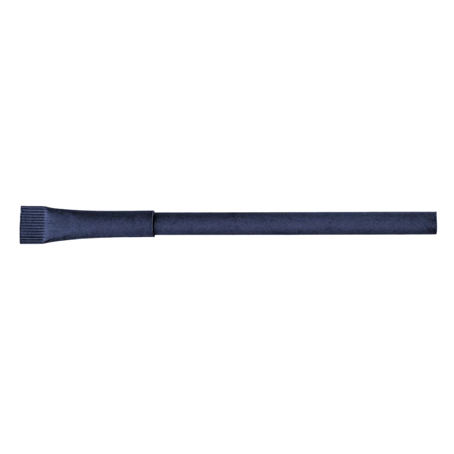 Długopis z dopasowaną kolorystycznie zatyczką, trzon z ciętym zakończeniem, wkład w niebieskim kolorze, produkt wykonany ze zrolowanego papieru