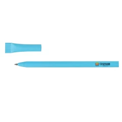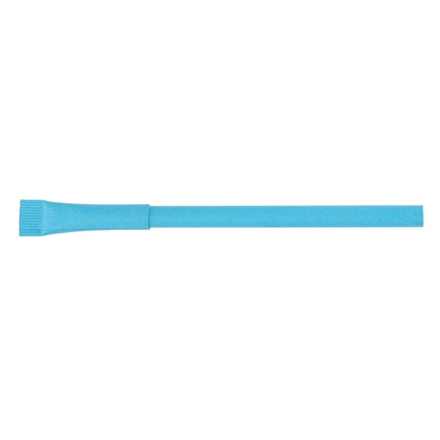 Długopis z dopasowaną kolorystycznie zatyczką, trzon z ciętym zakończeniem, wkład w niebieskim kolorze, produkt wykonany ze zrolowanego papieru
